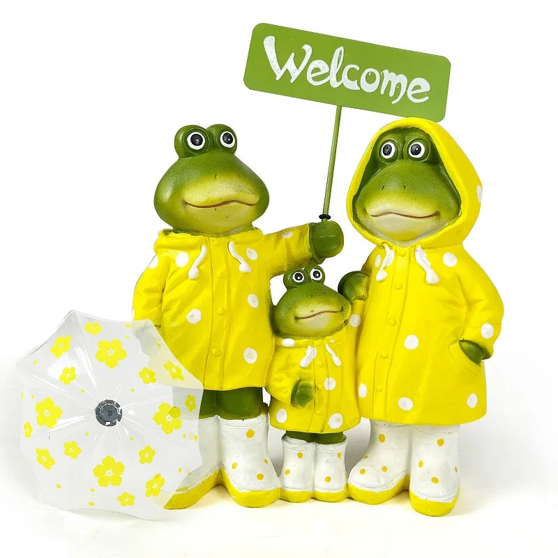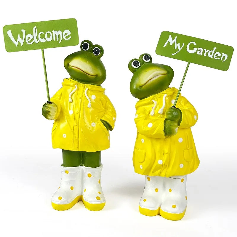 Cora's Resin Couple Frog Ornament With Welcome Sign Outdoor Garden Sculpture Statue