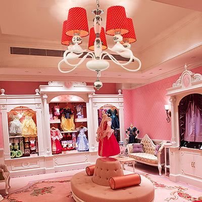Contemporary Red Dot Shade Pendant Lights - 5-Light Metal Hanging Lights for Living Room