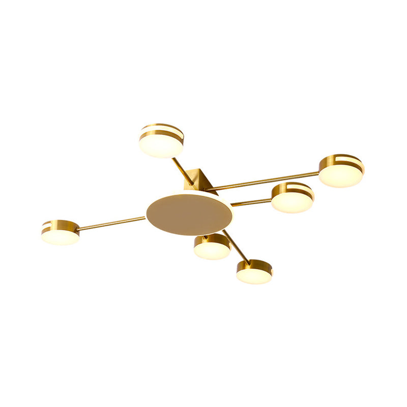 Modern Gold Circular Flush Led Semi Lamp With Acrylic Shade In White/Warm/Natural Light - 6 Heads /