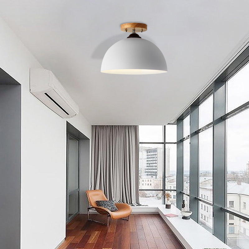 Metallic 1 Head Semi Flush Ceiling Light In Red/Pink/White/Gray For Bedroom - 12 Wide White