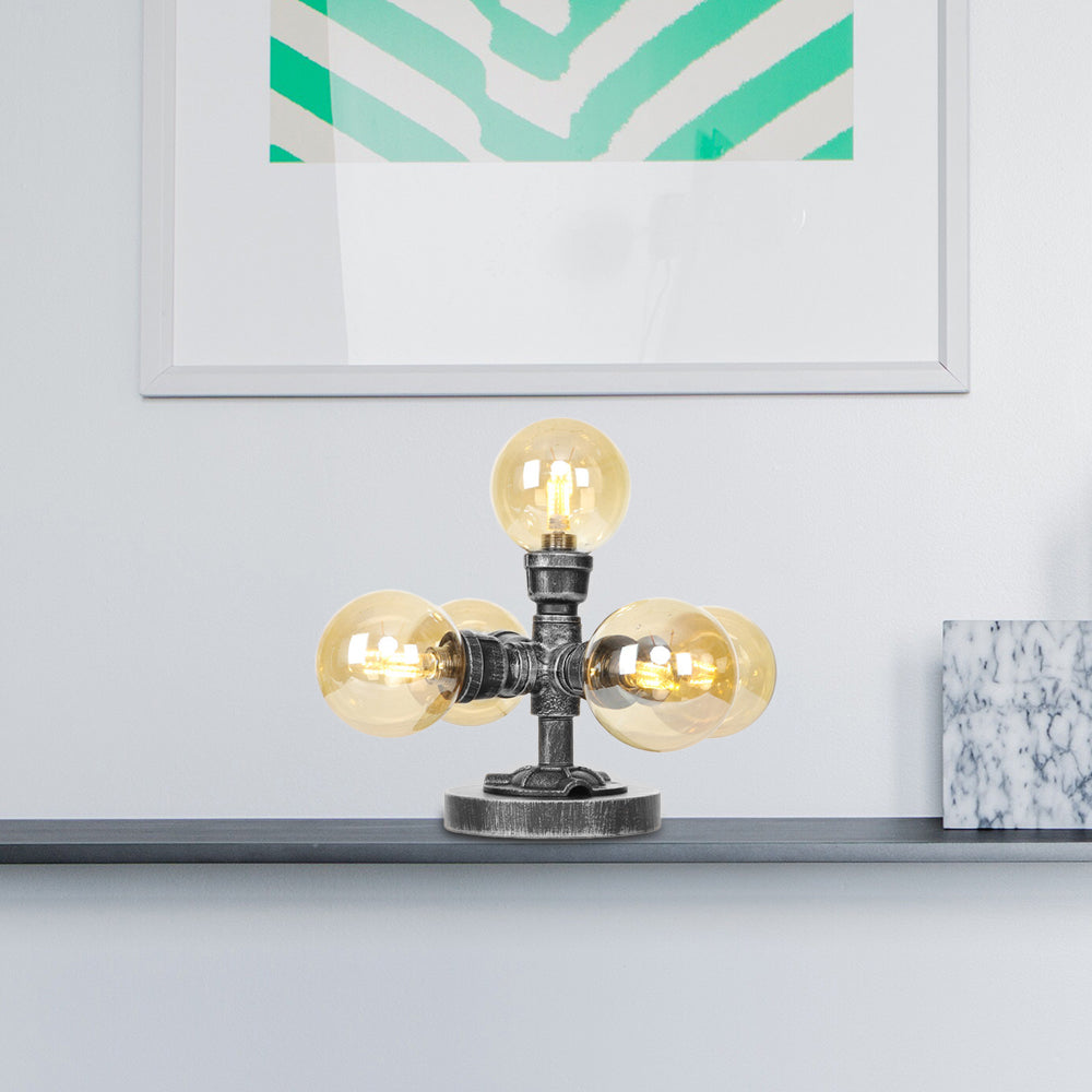 Industrial Desk Lamp With Clear/Amber Glass Globe Shade - Antique Silver Finish 4/5-Light Study Room