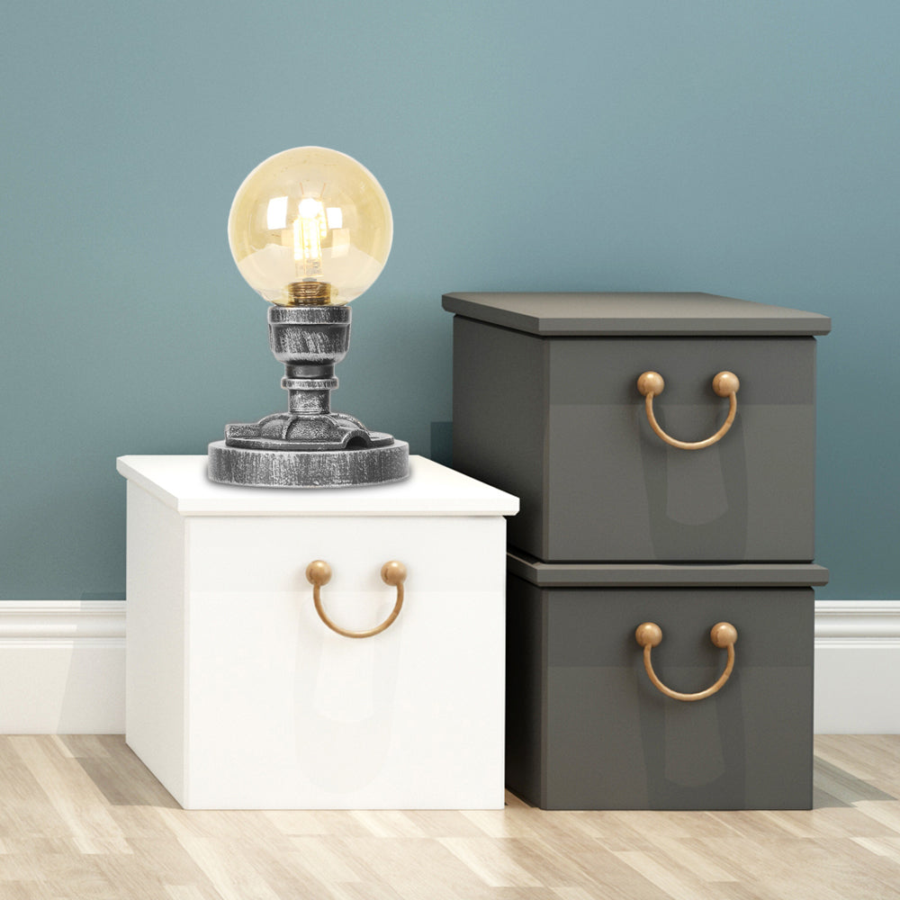 Industrial Single Bulb Desk Lamp - Globe Clear/Amber Glass Antique Silver Finish Living Room Task