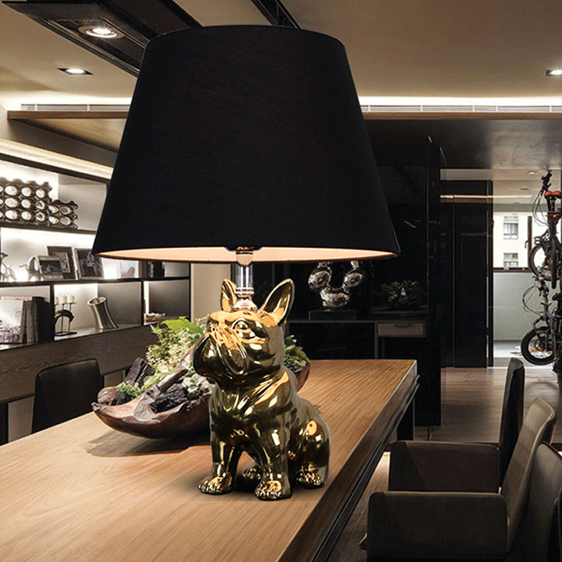 Traditional Resin Dog Nightstand Lamp For Bedroom - Silver/Gold 1 Head Conical Fabric Shade Gold