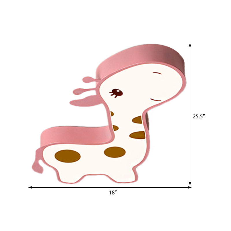Giraffe Shaped LED Acrylic Flush Mount Lamp in Blue/Pink - Cartoon Style Light Fixture for Bedroom