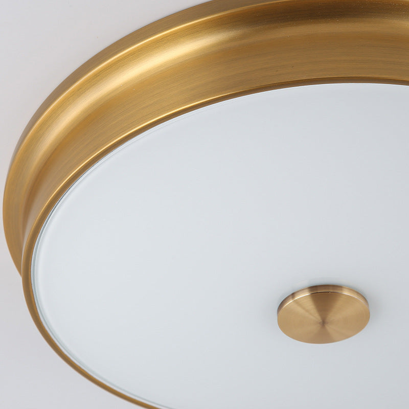 Led Drum Flush Mount Lighting White Glass Ceiling Fixture For Living Room In Warm/White Light