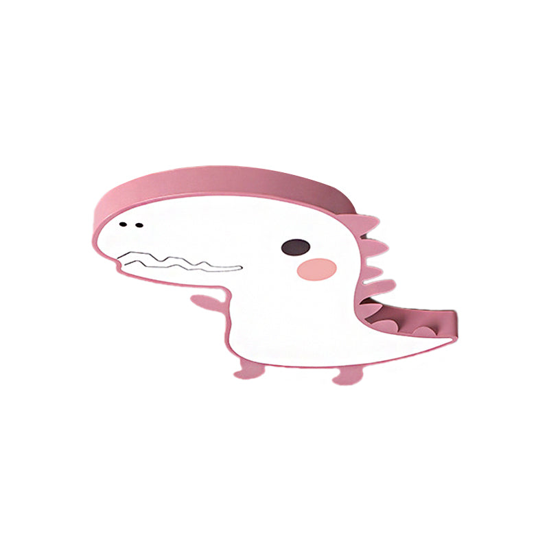 Dinosaur Flushmount Lamp: Pink/Green Cartoon LED Ceiling Light with Acrylic Diffuser (Warm/White)
