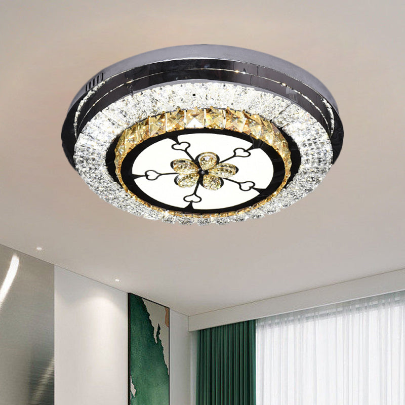 Modern Led Flushmount Ceiling Fixture With Stainless-Steel Frame And Clear Crystal Blocks