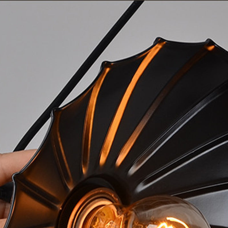 Black Scalloped Iron Ceiling Suspension Lamp - Loft Dining Room Pendant Light with 1 Bulb