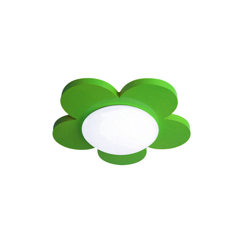 Kids Bedroom Macaron Flush Mount Ceiling Light With Floral Acrylic Shade Green / 14.5 White
