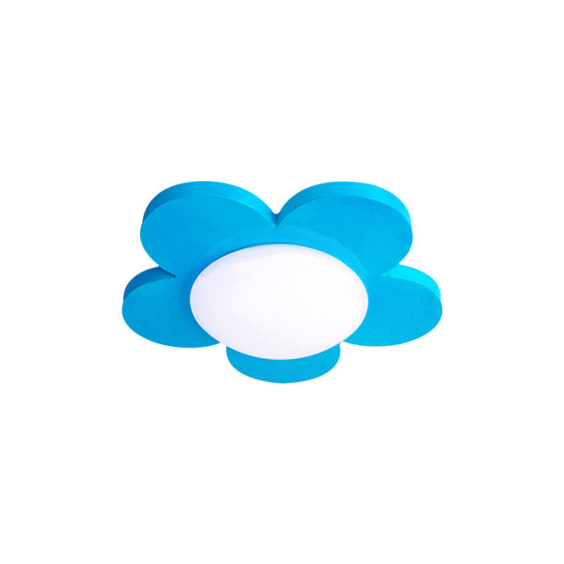 Kids Bedroom Macaron Flush Mount Ceiling Light With Floral Acrylic Shade Blue / 14.5 White