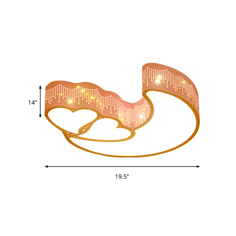 Kids Cartoon Moon Heart Led Ceiling Light - Metal Acrylic Mount For Bedroom Pink / White