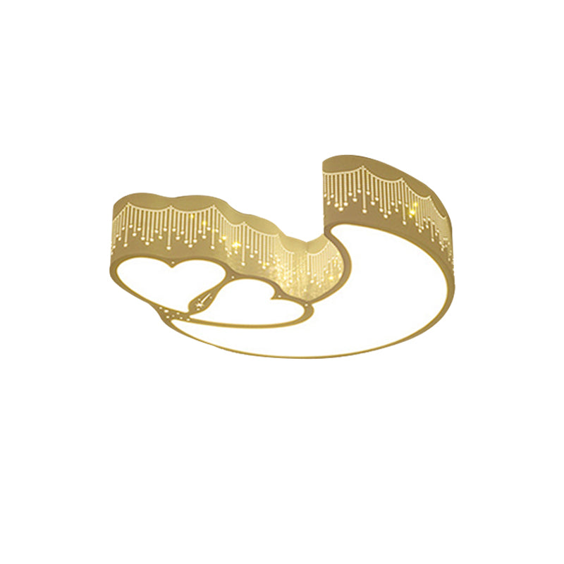 Kids Cartoon Moon Heart Led Ceiling Light - Metal Acrylic Mount For Bedroom
