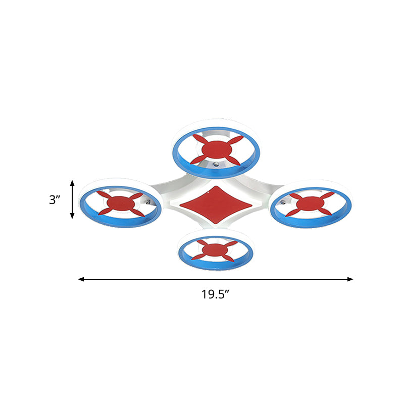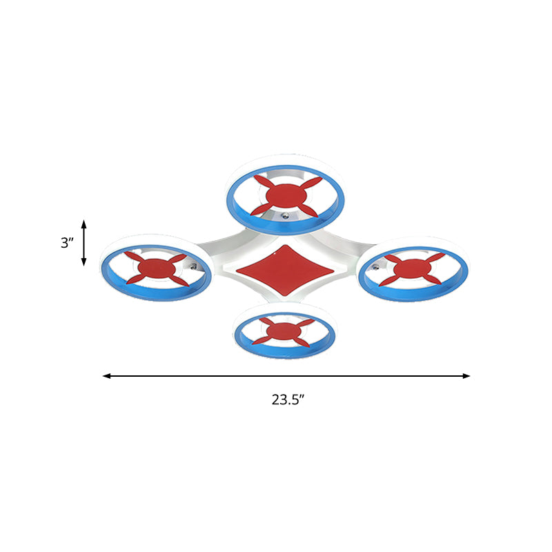 Kids Space Vehicle Ceiling Lamp: Blue and Red LED Flush Mount - Acrylic Metal Cartoon Light