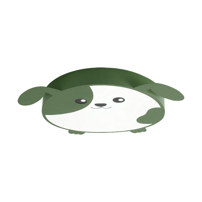 Doggie-Themed Led Flush Mount Ceiling Light For Kids Bedrooms In Pink/Green With Warm/White Green /