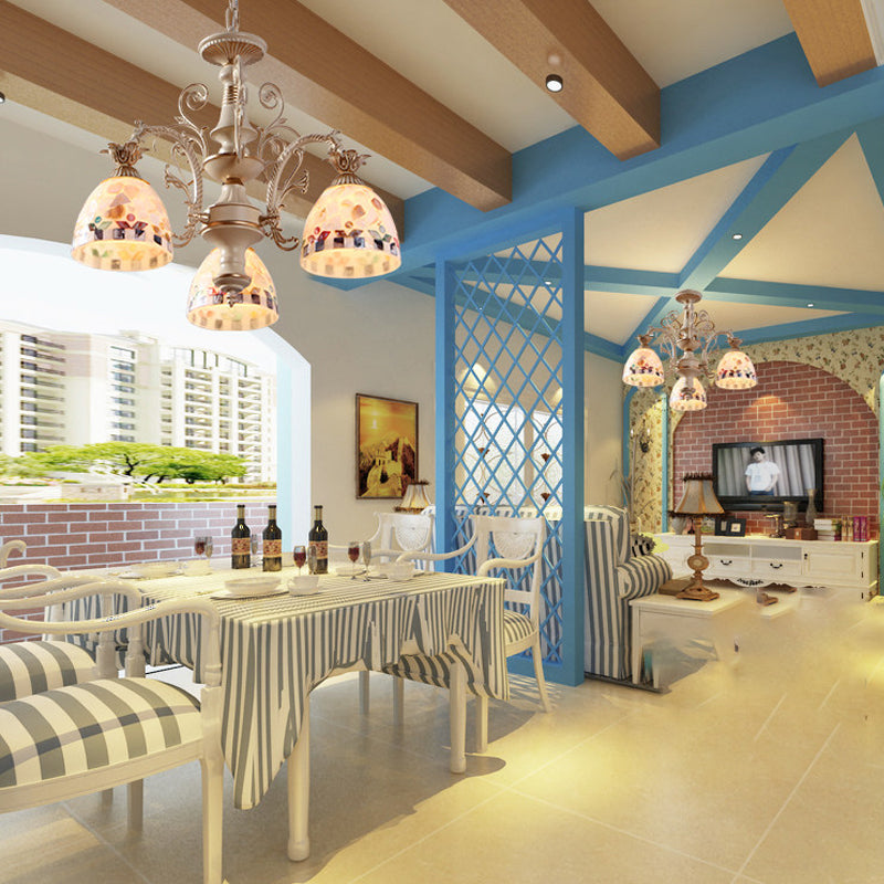 3/5 Lights Chandelier Pendant Light - White and Gold Tiffany Style Stained Glass Mosaic Hanging Lamp Kit