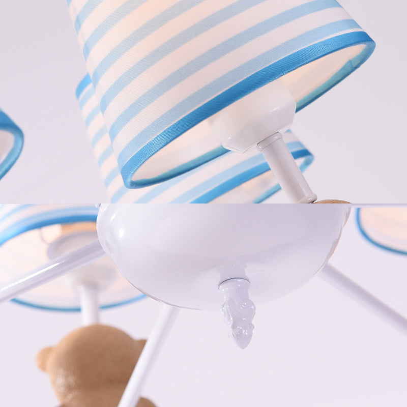 Brown Cartoon Tapered Shade Ceiling Light For Living Room - Fabric Chandelier Fixture 6 /