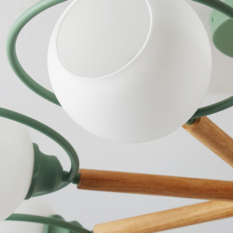 Art Deco Round Glass Pendant Fixture - Dining Room Hanging Lights With 5 Bulbs Green