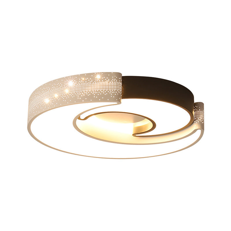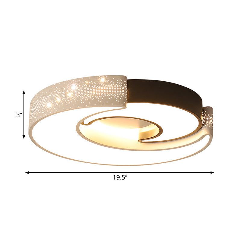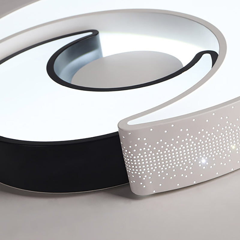 Modern Moon Flush Lighting - Black and White Iron Ceiling Flushmount in Warm/White, 16"/19.5" Wide