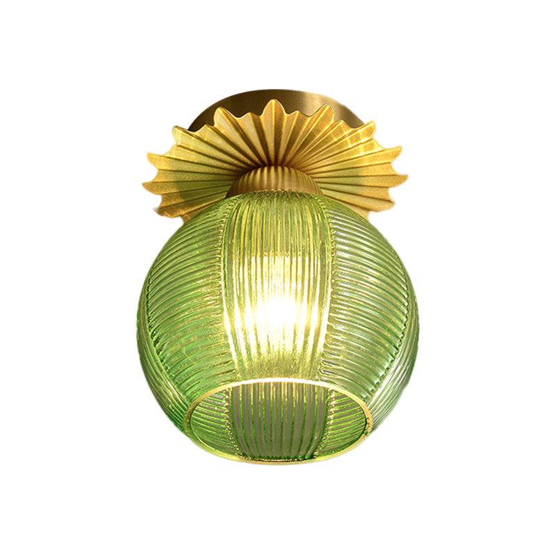 Contemporary Clear/White/Blue Prism Glass Hallway Semi Flush Mount Ceiling Light Green