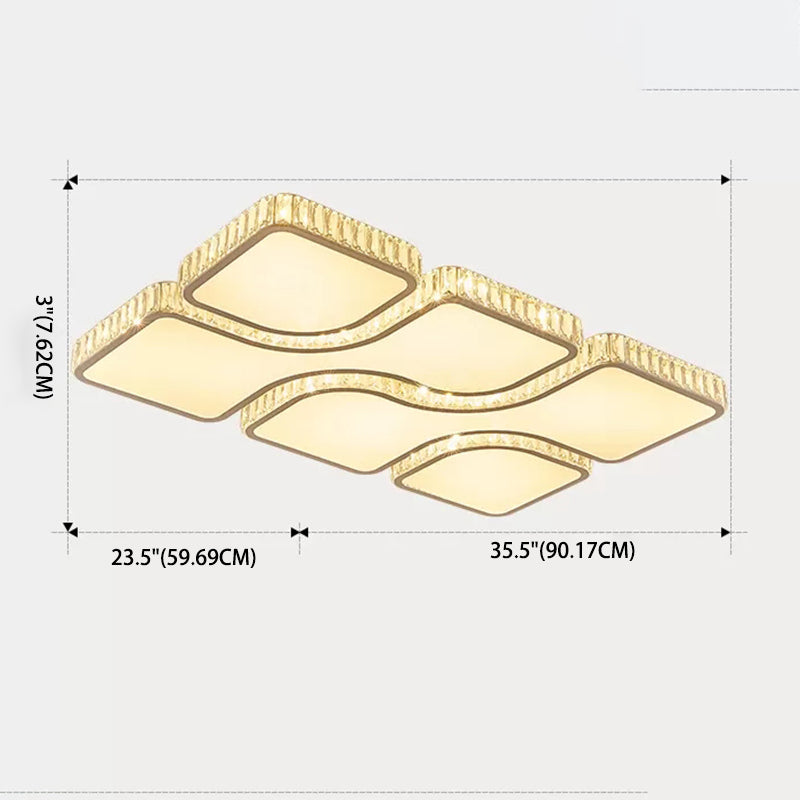 Modern White Quadrangle Led Acrylic Flush Mount Light With Crystal Inlay / 35.5