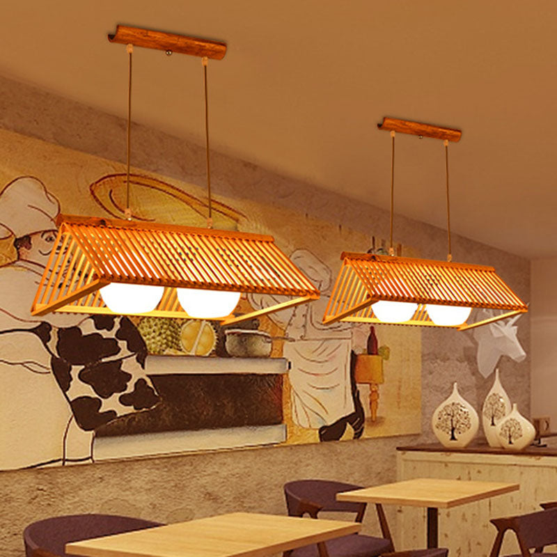 This product is a modern bamboo island ceiling light with a ball cream glass shade. It is made of bamboo and has a triangular prism shape. It is available in sizes 20 to 24 inches, 25 inches, and above. It has a fixture width of 16 inches and a fixture height of 8 inches. The chain/cord length is 27.5 inches. It uses E26/E27 bulbs (not included) and is compatible with LED, incandescent, and fluorescent bulbs. It is available in wood color.