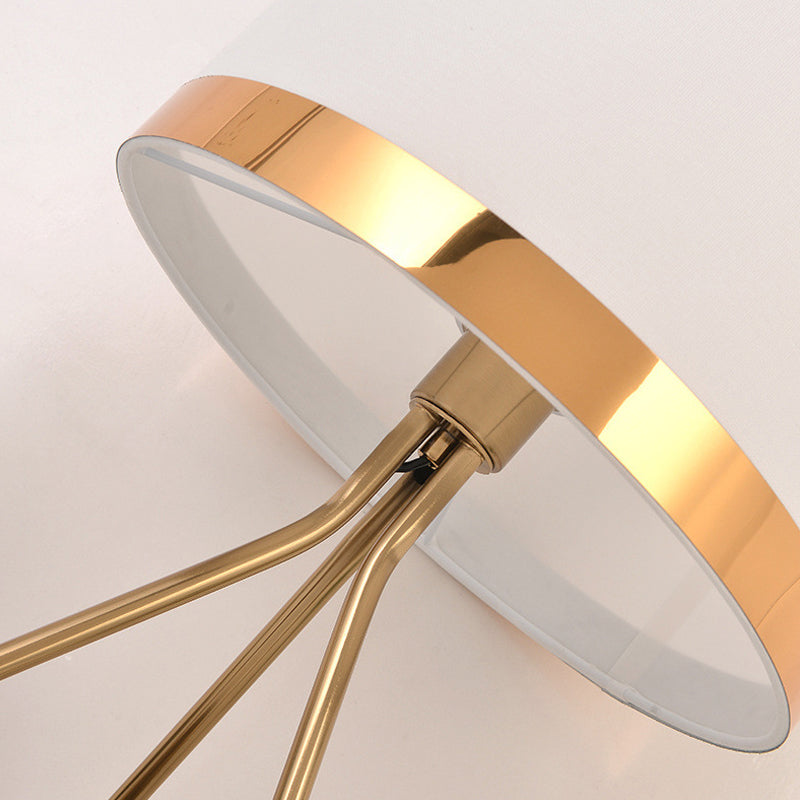 Classic 1-Light Black/White Drum Fabric Desk Lamp With Metal Base White