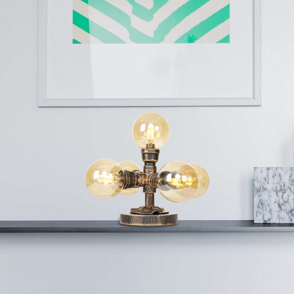 Industrial Style Desk Lamp With Clear/Amber Glass Shade 4/5-Light Antique Silver/Bronze Finish Amber