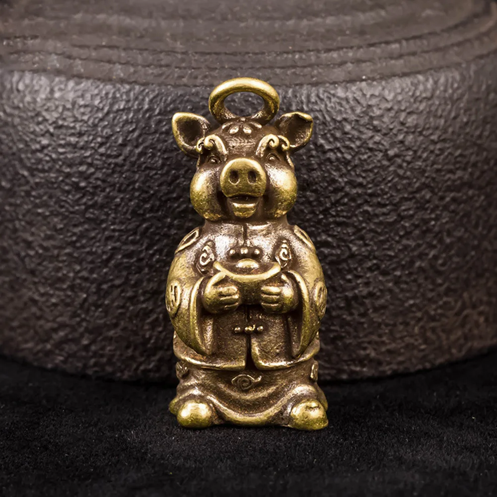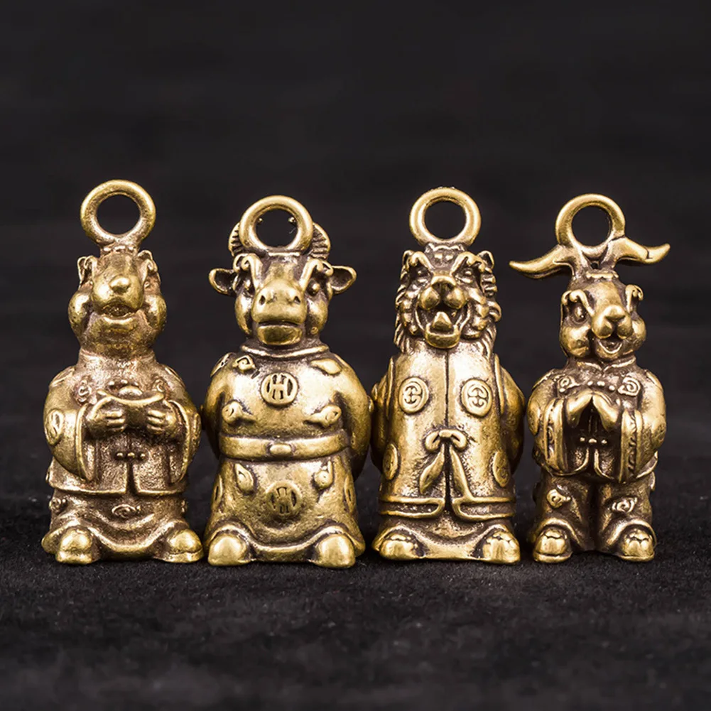 Zodiac Copper Sculpture Ornaments Brass Animal Small Statue Miniatures Figurines Keychain Pendants Car Key Chain Hanging Gift
