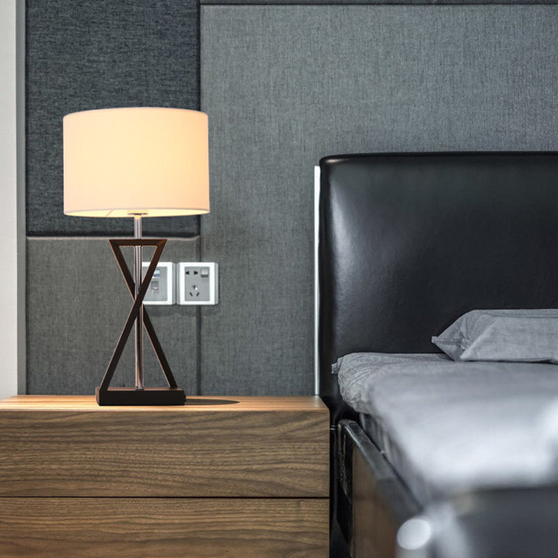 Modern 1-Head Table Desk Lamp - White Cylindrical Small Light with Fabric Shade