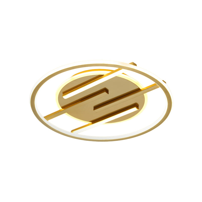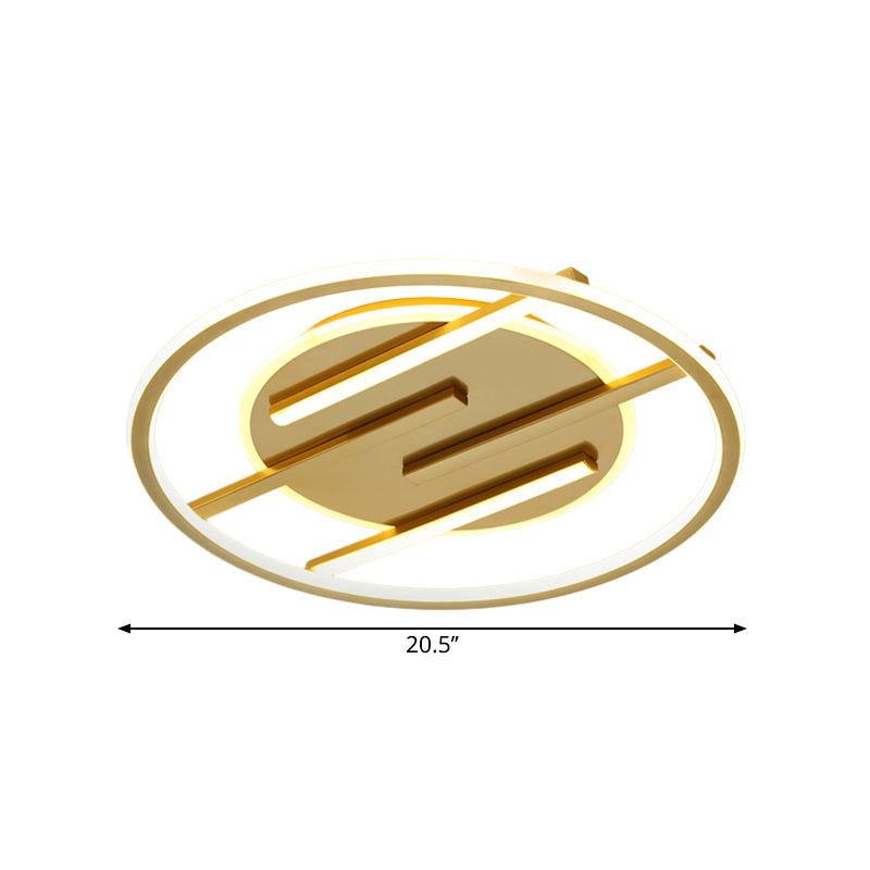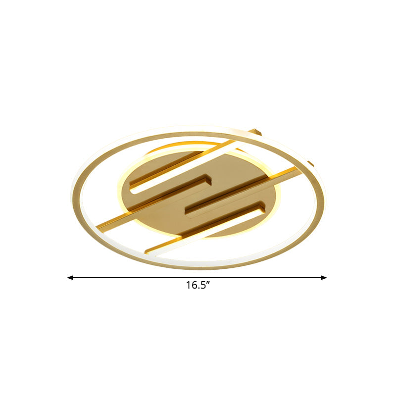 Gold Led Bedroom Ceiling Lamp: Simplicity Circle Flush Light Fixture - Aluminum 16.5/20.5 Width /