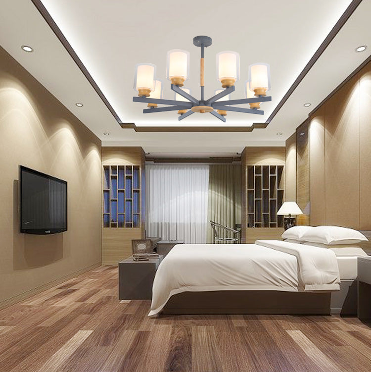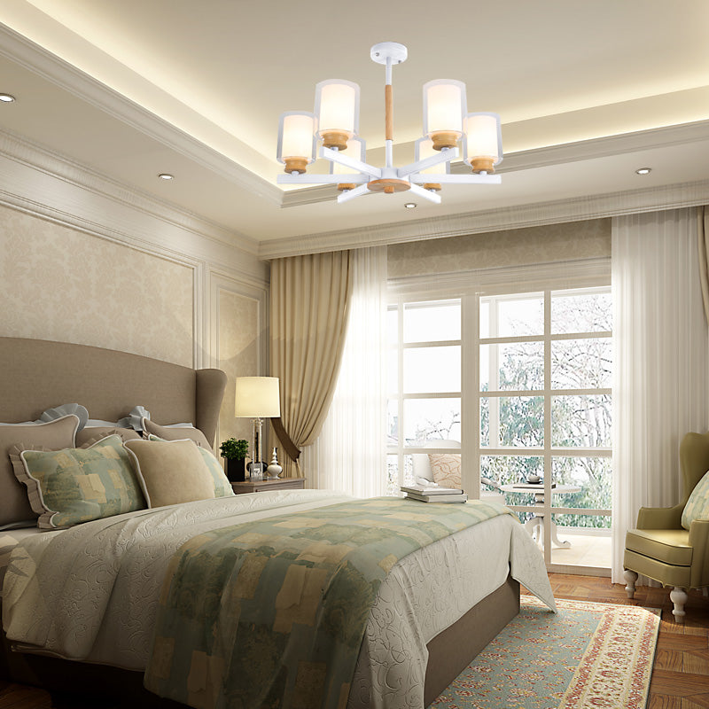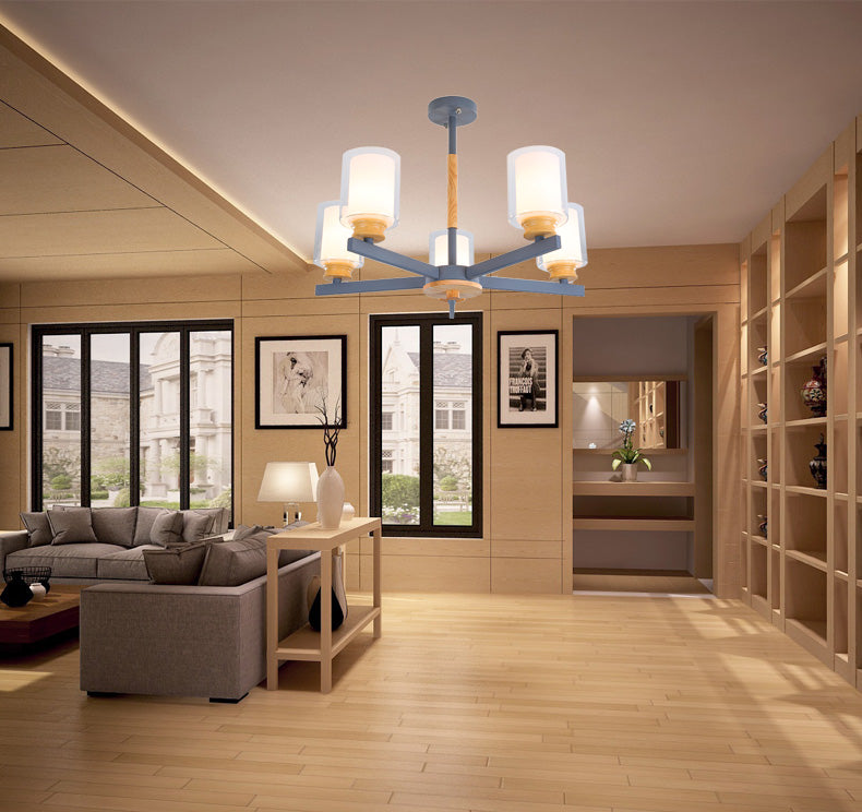 Nordic Opal Glass Cylinder Pendant Chandelier - 3/5/6 Lights - Grey/White Hanging Lamp for Living Room