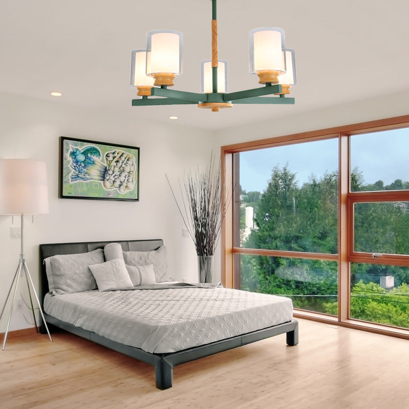 Macaron Cylinder Chandelier Pendant Light - 3/5/6 Lights - Pink/Yellow/Green - Living Room