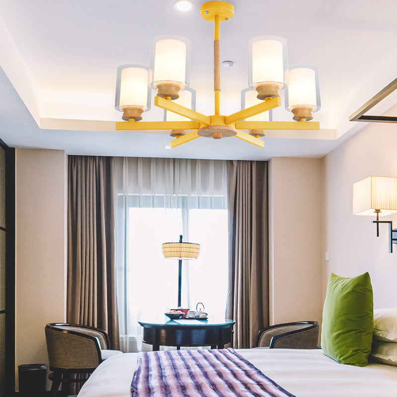 Macaron Cylinder Chandelier Pendant Light - 3/5/6 Lights Pink/Yellow/Green Living Room 6 / Yellow