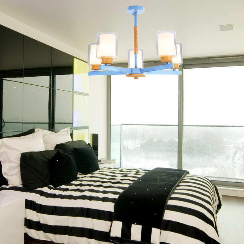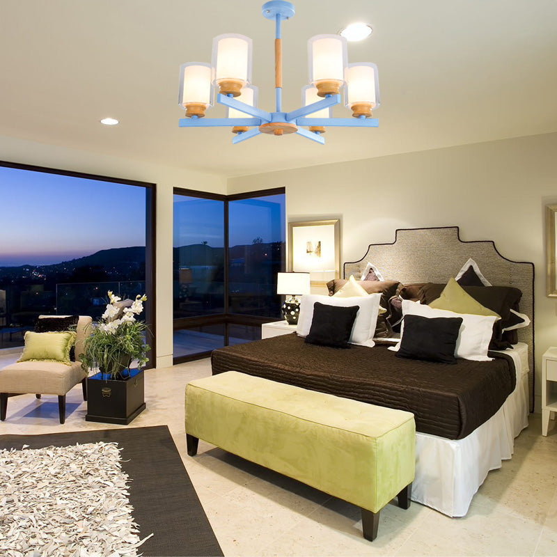 Macaron Cylinder Chandelier Pendant Light - 3/5/6 Lights Pink/Yellow/Green Living Room 8 / Blue