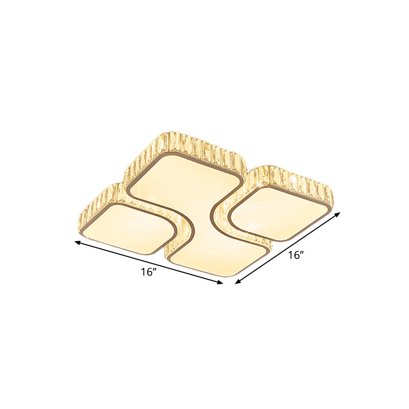 Modern LED Flush Lamp Chrome Square Ceiling Fixture- 16"/19.5" with Crystal Rectangle Shade in Warm/White Light