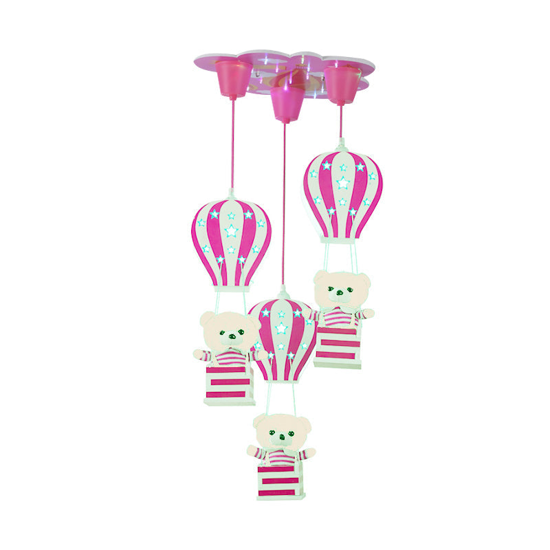 Contemporary Wood Bear Pendant Light - 3-Light Hanging Lamp For Baby Boys & Girls Bedroom Pink