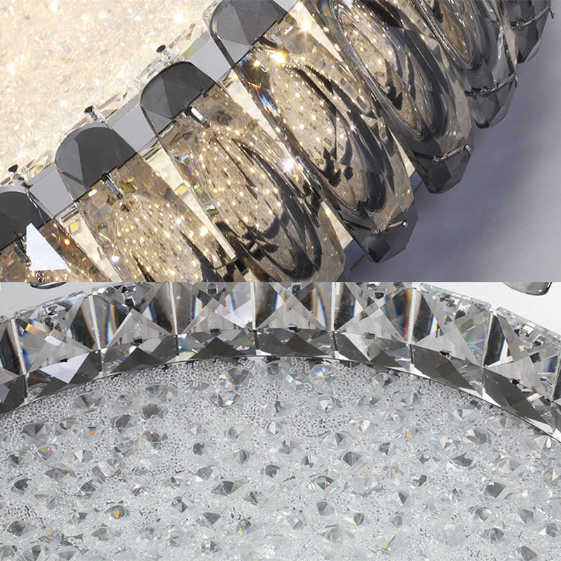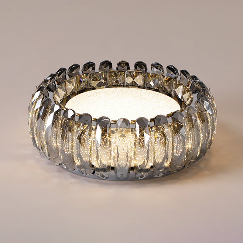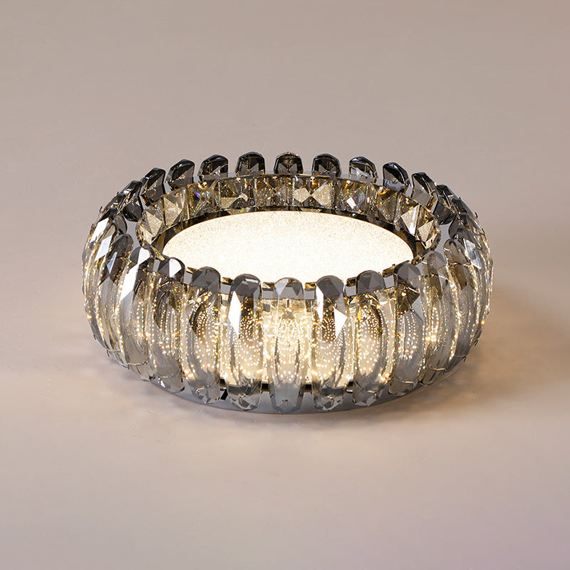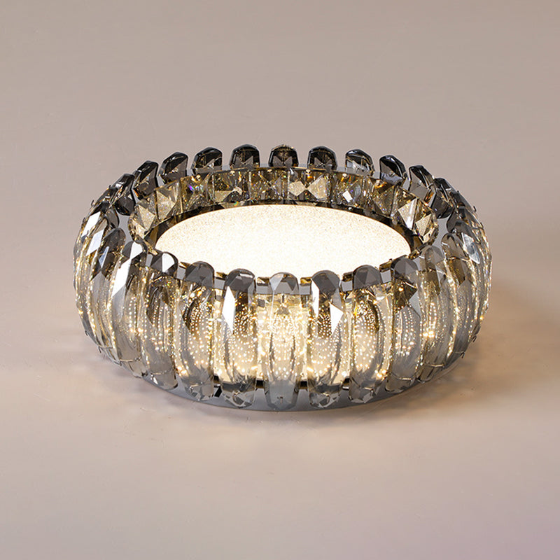 Minimalist Crystal Chrome Led Flush Ceiling Light: Donut Shaped For Bedroom / 16 Smoke Grey