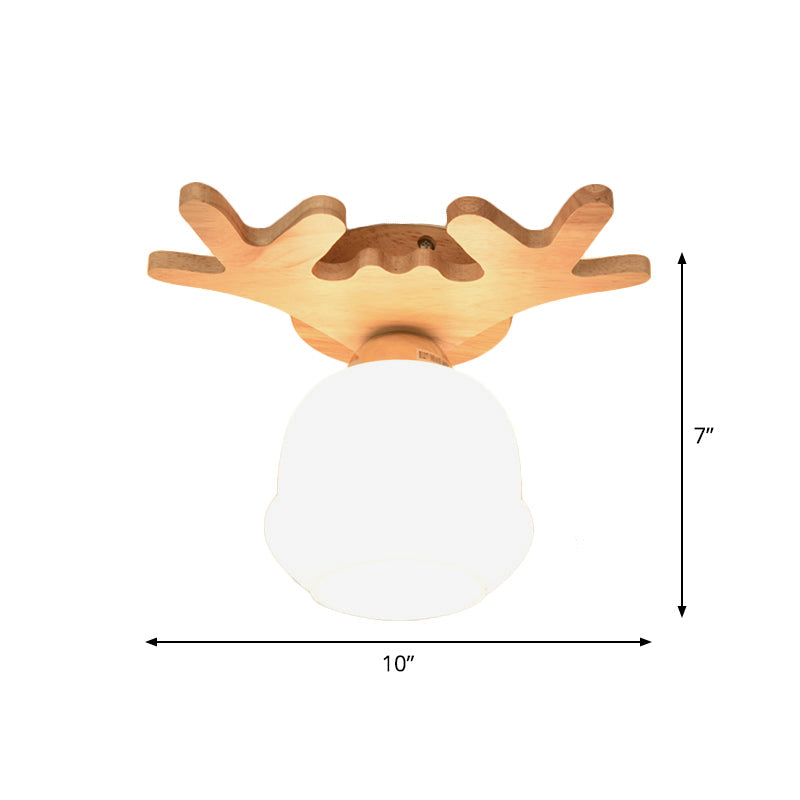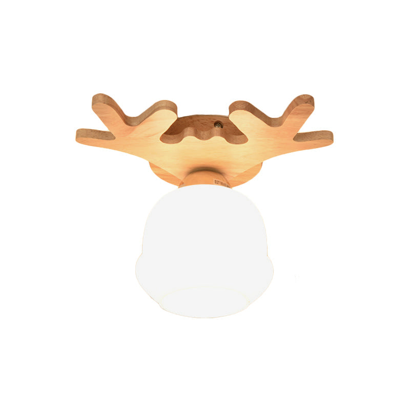 Opal Glass LED Ceiling Fixture with Wood Antler/Square/Round Design - Beige Flushmount