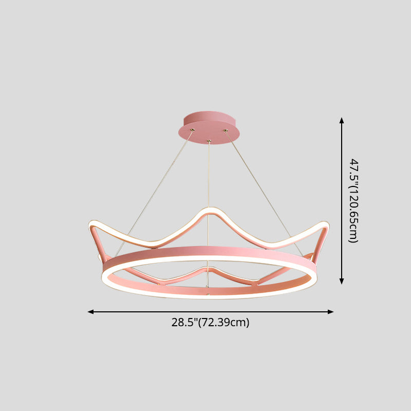 Crown Suspension Pendant Light For Kids Bedroom With Metallic Finish Pink / 28.5