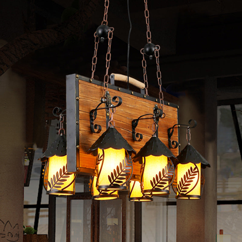 This beautiful chandelier will bring a classic, sophisticated look to any room while giving the necessary illumination. It is sure to bring a timeless ambiance and a modern look to your home. Light up your home with this spectacular and eye-catching Rectangle Dining Room Island Light Antique White Fabric/Clear Glass 6 Lights Black Chandelier Lighting Fixture with Metal Arm.