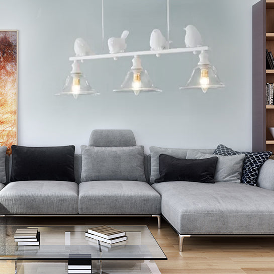 Rustic Bird Cone Shade Island Light - 3 Clear Glass Lights in White for Balcony