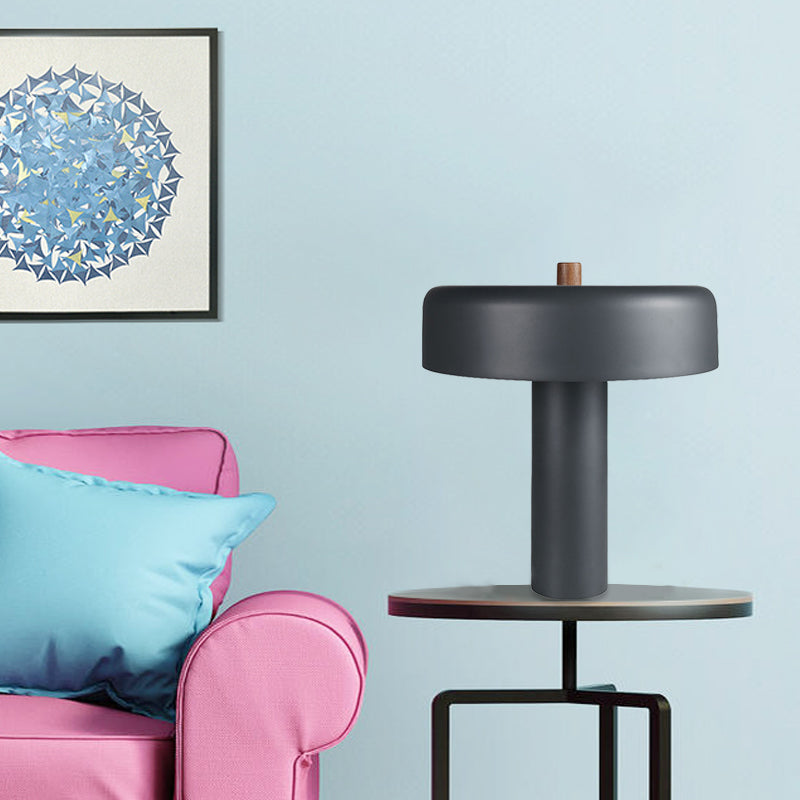 Modernist LED Grey Metal Drum Nightstand Light with Plug-In Cord for Bedroom