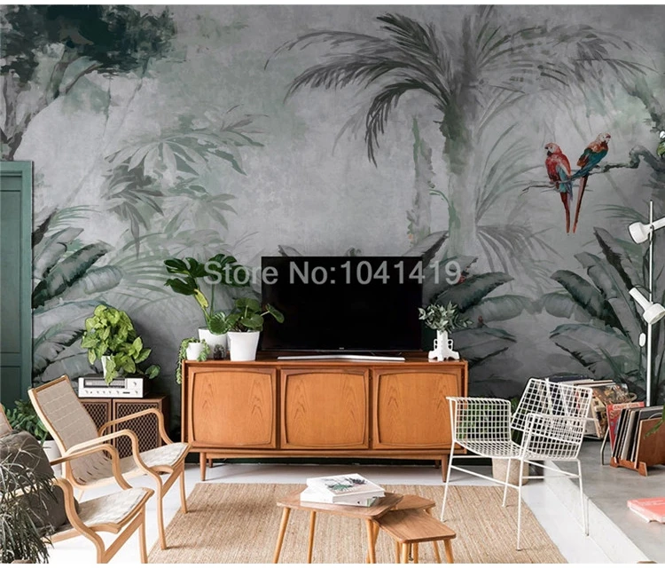 Chloe's Eurooean Style Hand Drawn Tropical Plant Leaves Mural Wallpaper