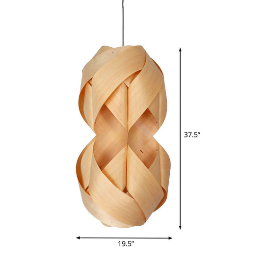1 Bulb Hand Woven Beige Pendant Light - Chinese Wood Suspended Fixture