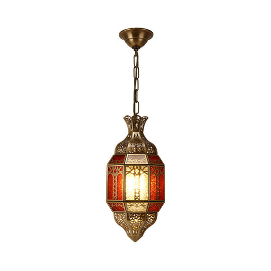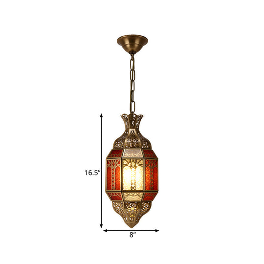 1-Bulb Brass Suspension Lamp - Arab Metal Lantern Ceiling Fixture For Restaurants