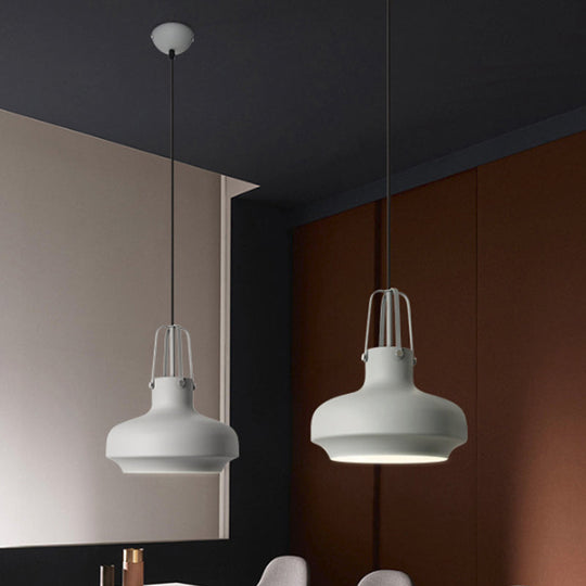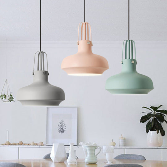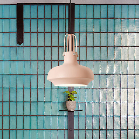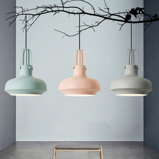 1 Head Macaron Pot Pendant Ceiling Lamp With Gripper In Pink/Blue/Grey - Aluminum Restaurant Down