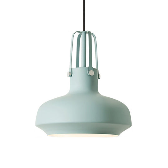1 Head Macaron Pot Pendant Ceiling Lamp with Gripper in Pink/Blue/Grey - Aluminum Restaurant Down Lighting