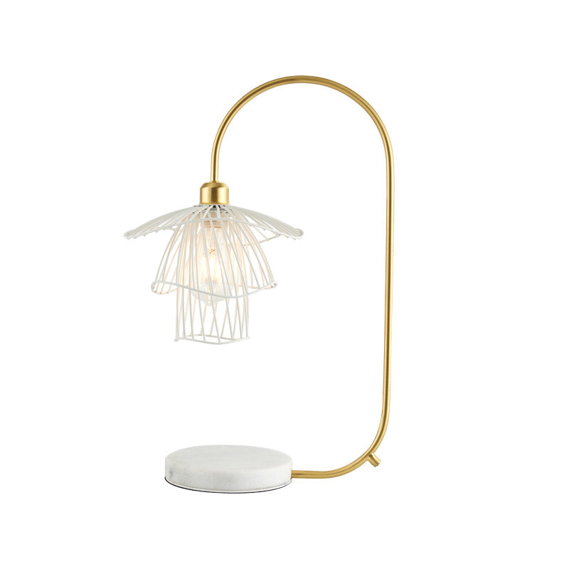 Modern 1-Light Black/White Nightstand Light With Geometric Metal Shade For Bedroom White