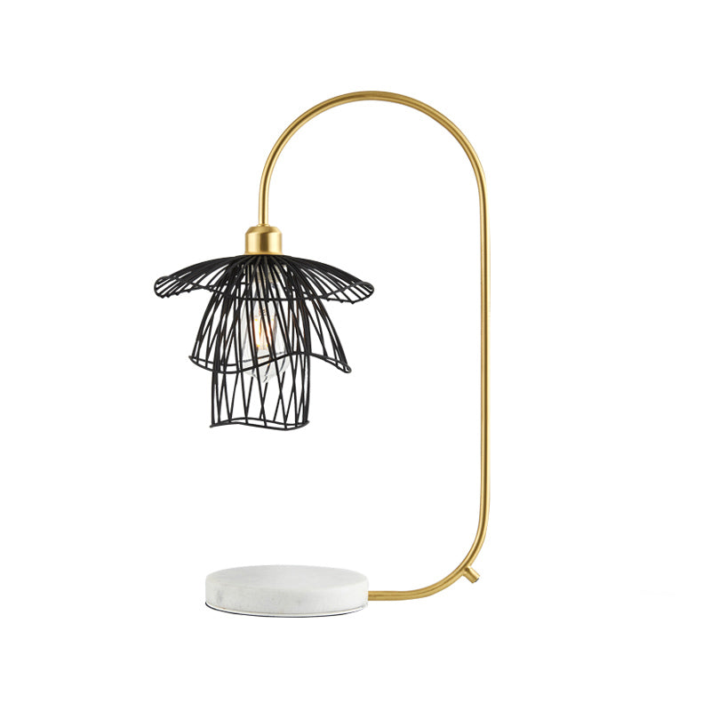 Modern 1-Light Black/White Nightstand Light with Geometric Metal Shade for Bedroom