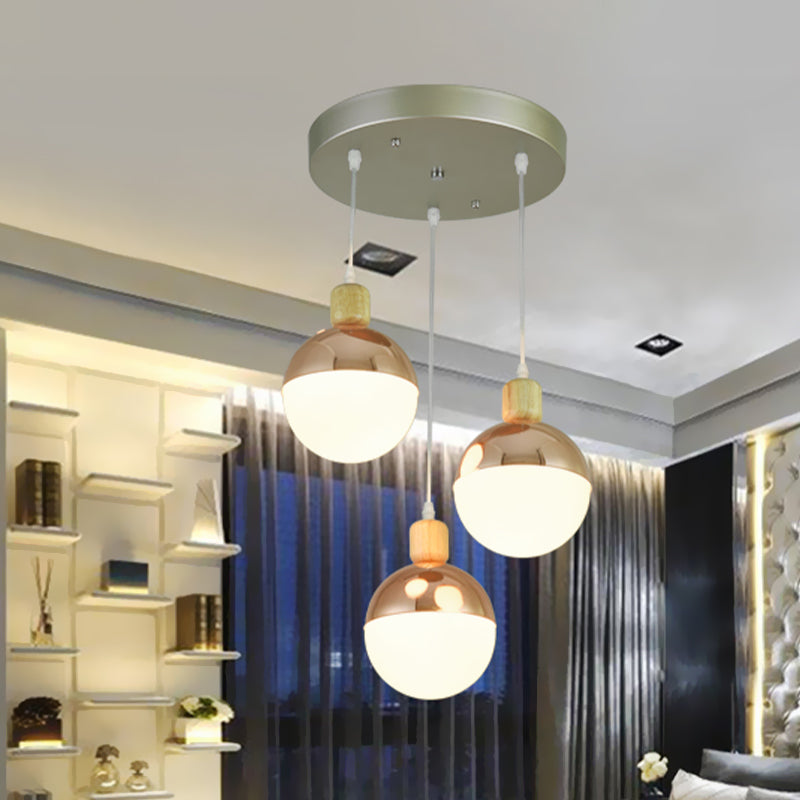 Modern Cracked Glass Tube Pendant with Wood Suspension - 3-Bulb Multi-light Suspension Lamp for Dining Room